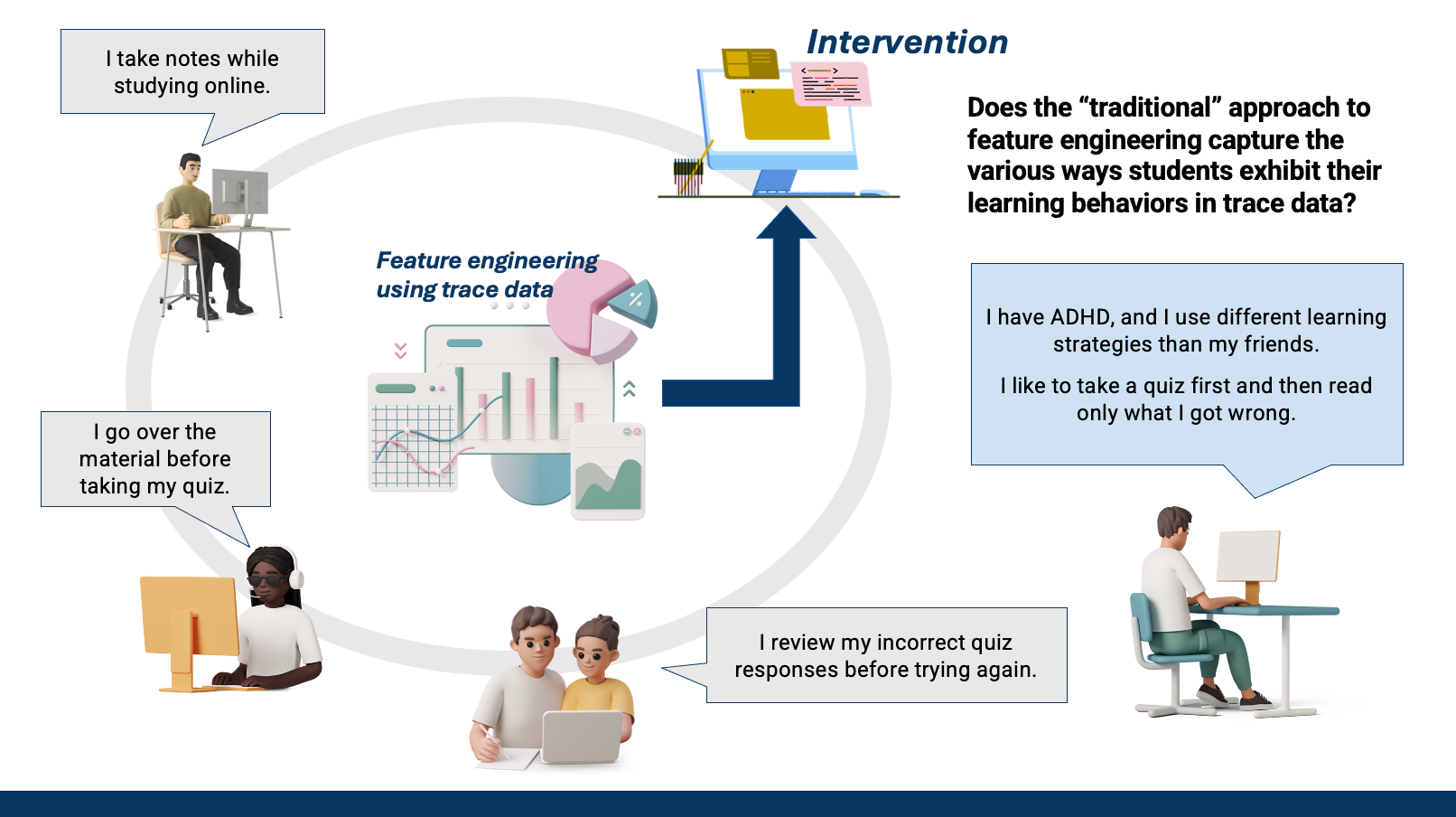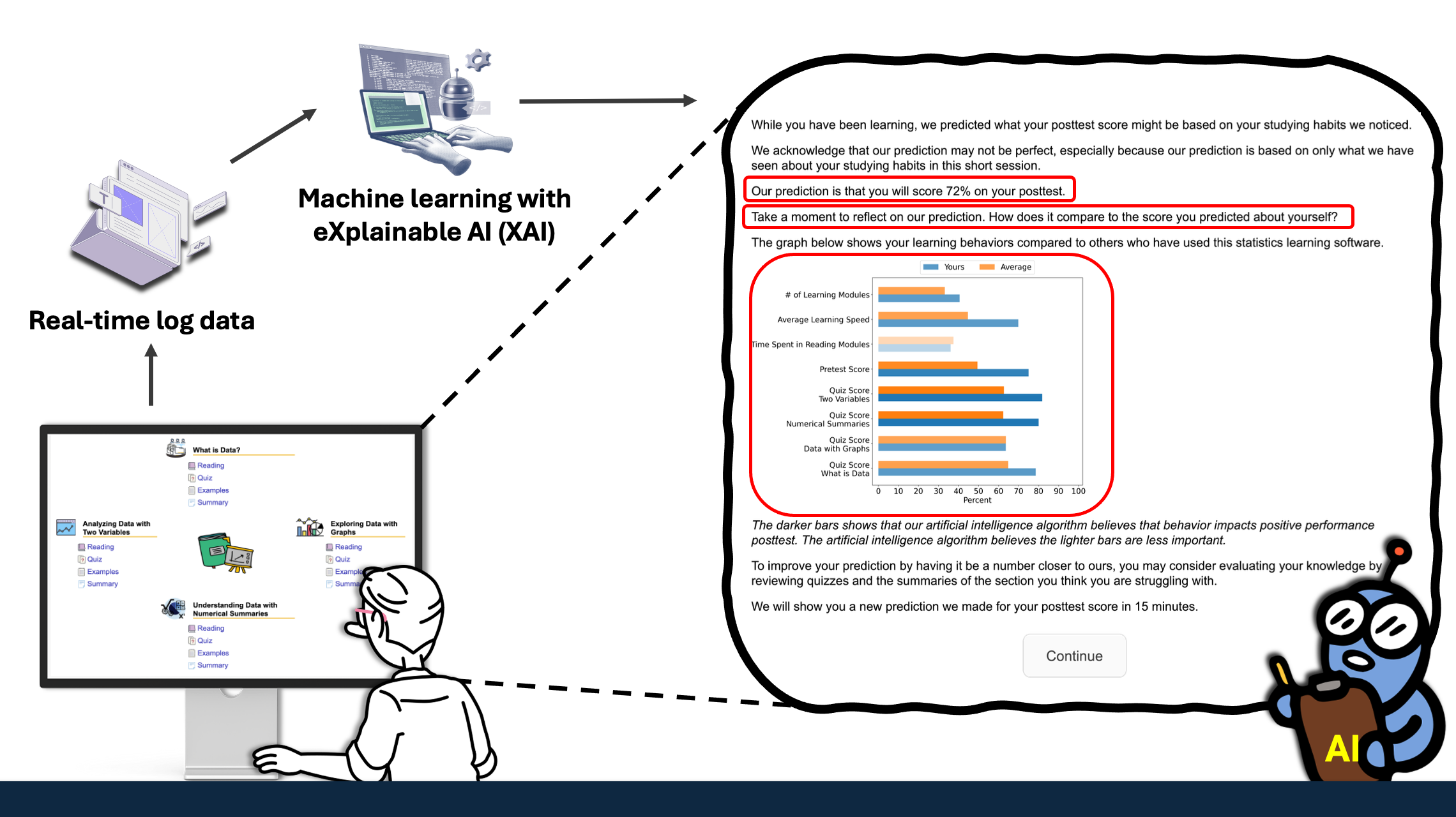 To design and develop XAI-driven interventions that help individuals learn, practice, and develop self-regulated learning skills, it is crucial to understand how these skills manifest in computer-based learning environments. To achieve this, I leverage machine learning, data mining (e.g, sequential pattern mining), and statistical methods (e.g., hierarchical linear modeling), grounded in learning theories, to measure the application of these skills.